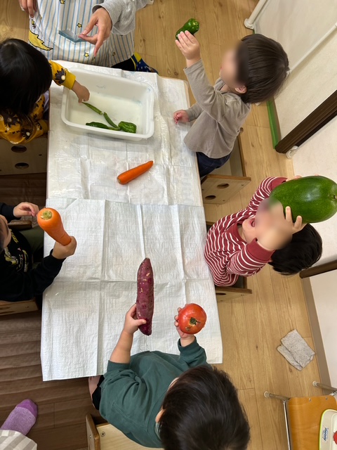 ホンモノの食材を「みて」「さわって」「かんじながら」の実験でした。