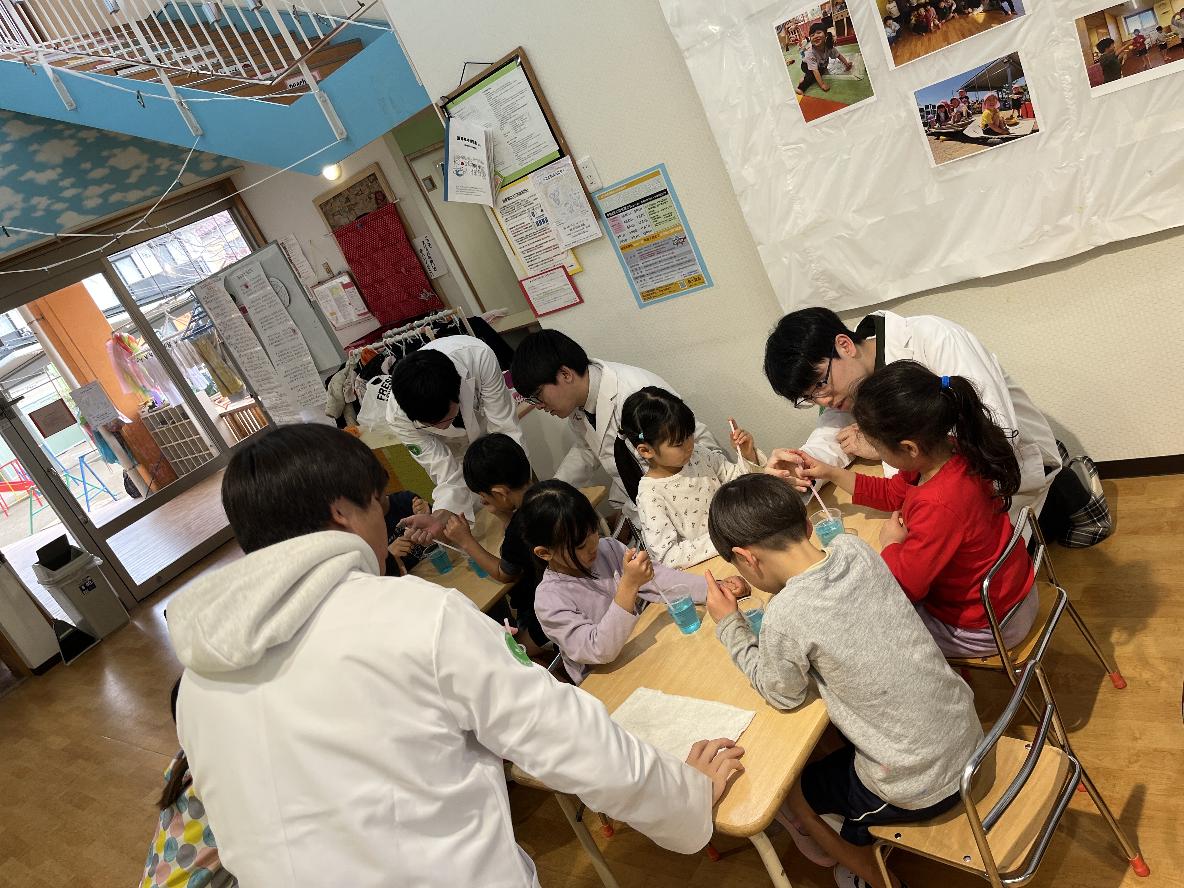 東京学芸大学理科教育系サークルAggressive!!の学生7名の方と一緒に年長さんクラスが実験教室を行いました。